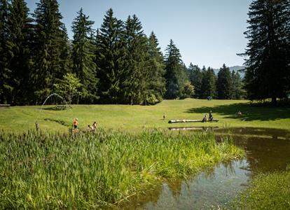 Rofis Boden a Stilfes presso Vipiteno è uno dei gioielli naturali di Campo di Trens. A mezz’oretta a piedi dal centro di Stilfes il sentiero conduce ad una grande radura in mezzo al bosco. Lì troverete un piccolo laghetto naturale, ampi prati verdi, una zona barbecue, un padiglione e un parco giochi realizzato con materiali naturali.